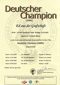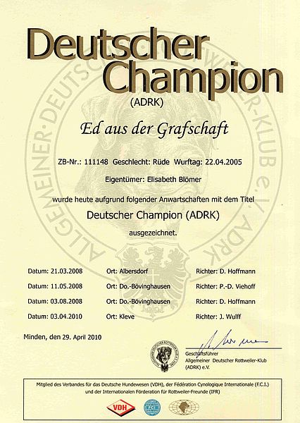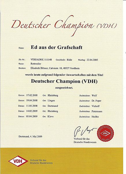 Ausstellungen: auf insgesamt 25 Schauen erreichte Ed 23mal ein V, davon 21mal ein V platziert und 15mal ein V1!